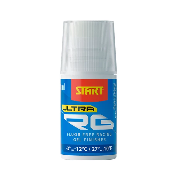 Start RG Ultra Gel er en fluorfri toppvoks i gelformat. Tester produsenten har gjort har vist at de nye glidvoksene gir de samme gli-egenskapene som fluorvoks på nesten ethvert føre. RG Ultra tilsvarer voks med høyt fluorinnhold. 30 ml.
