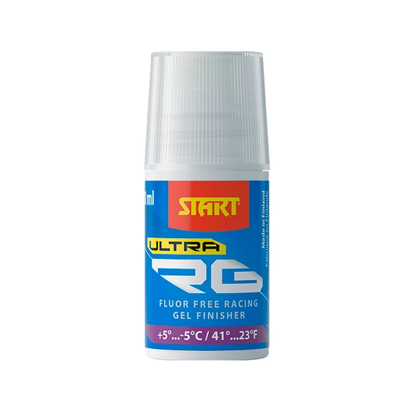Start RG Ultra Gel er en fluorfri toppvoks i gelformat. Tester produsenten har gjort har vist at de nye glidvoksene gir de samme gli-egenskapene som fluorvoks på nesten ethvert føre. RG Ultra tilsvarer voks med høyt fluorinnhold. 30 ml.